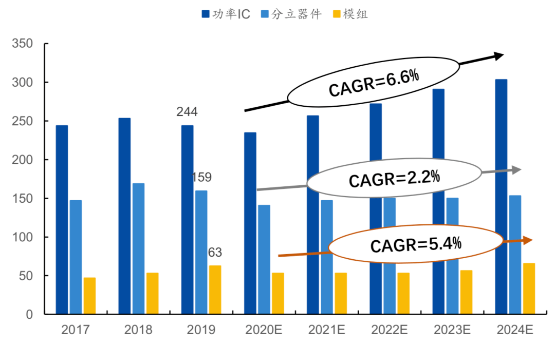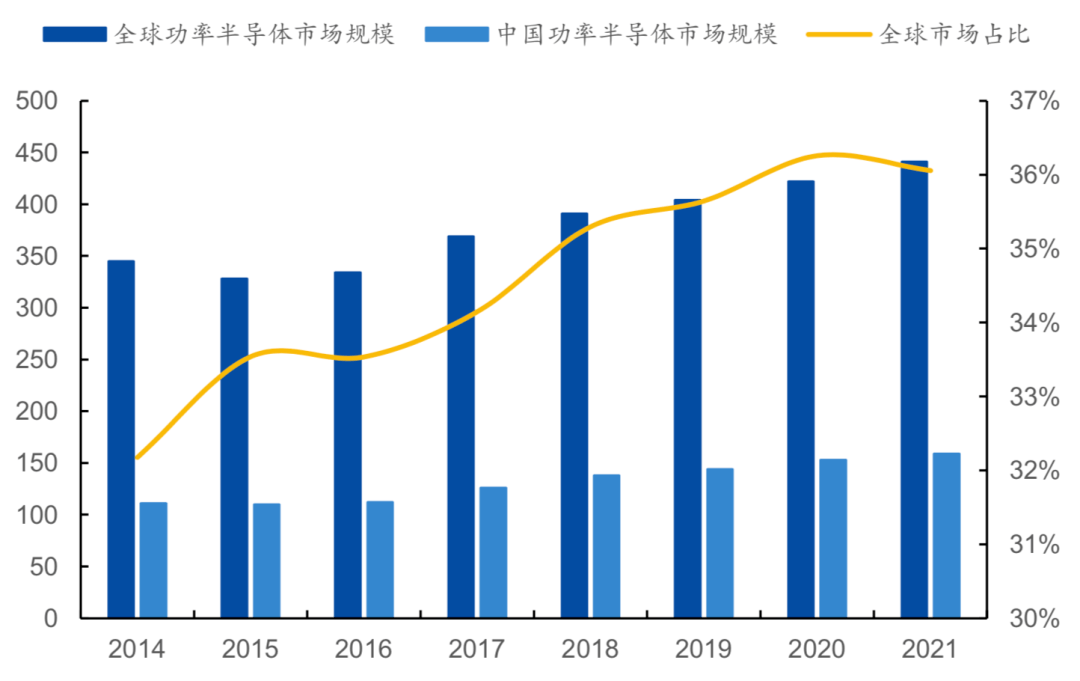 2021年我国功率半导体市场规模预计达159亿美元,年复合增长率4.83%,超过全球功率半导体增长速度。