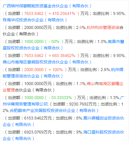 天眼查App显示,近日,合肥保碧新能源科技有限公司发生工商变更,股东新增广州华寓商务管理有限公司、蔚来汽车旗下合肥蔚来产业高质量发展股权投资合伙企业(有限合伙)、固德威(688390)等多家企业,同时公司注册资本由1亿人民币增至约7.7亿人民币。该企业成立于2022年6月,法定代表人为庞博,营业范围含太阳能热利用产品营销售卖、新兴能源研发技术、电力行业高效率节约能源研发技术、合同能源管理等,股东包括保利资本旗下投资企业及碧桂园创投旗下企业等。据报道,保碧新能源为保利资本和碧桂园创投联合孵化的综合能源管理服务商。