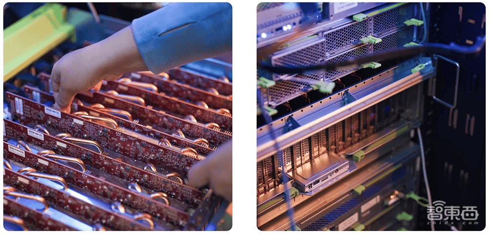 它由3个机箱组成,每个机箱包含12块电路板,每块电路板上有两个加速器。Meta特别设计了这个系统,这样就可以将芯片的时钟设置在1.35GHz(高于800mhz),功耗90W,而第一代设计的功耗为25W。